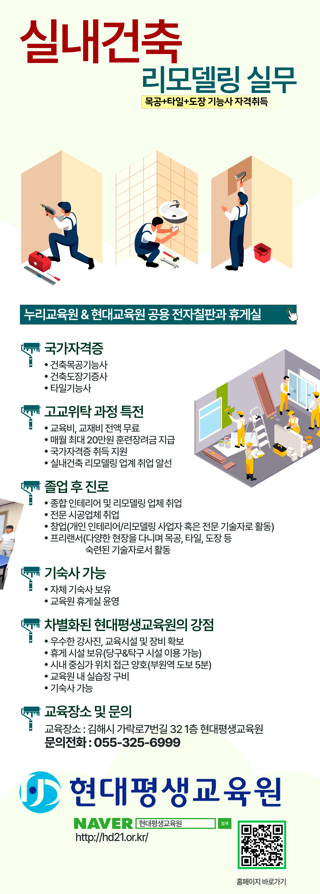 추가 문의사항은 교육원 홈페이지 입학상담게시판 또는 055-325-6999 전화상담 해주셔도 됩니다!