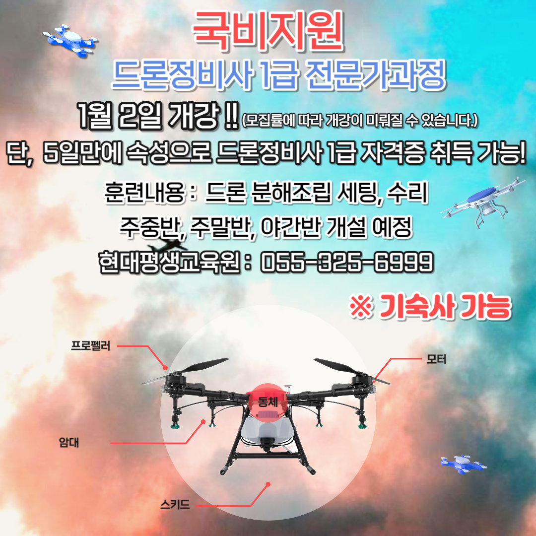 드론 1종 국가자격증이 없어도 단, 3일만에 속성으로 드론정비사 1급 자격증을 취득할 수 있습니다.